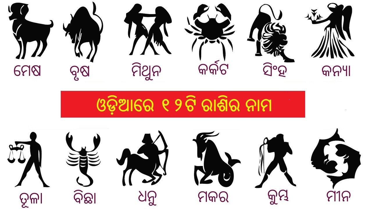 12 zodiac signs with their names in Odia (Oriya):