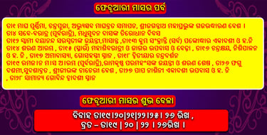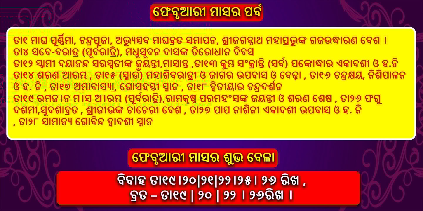📅 ଫେବୃଆରୀ 2026 ଛୁଟି ତାଲିକା