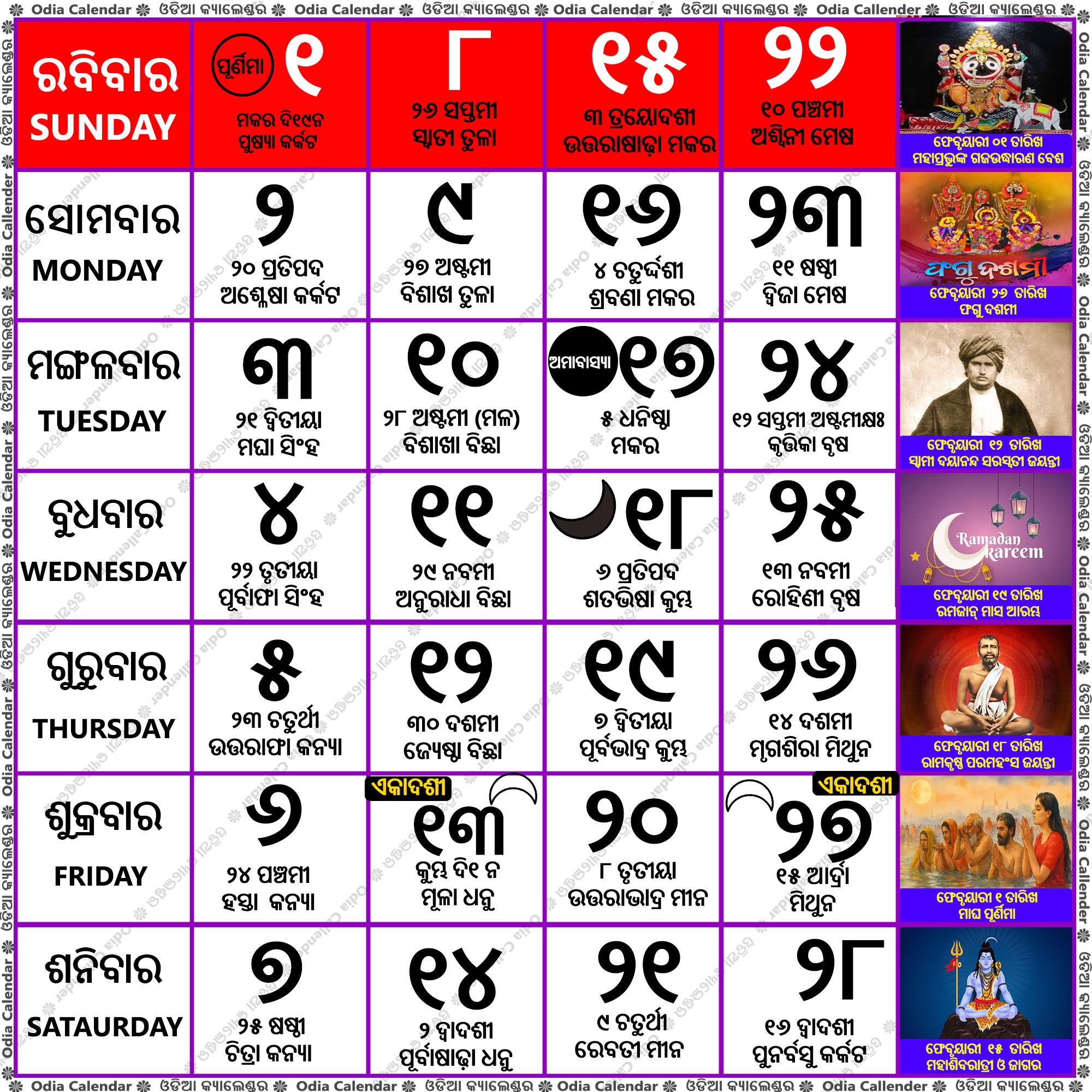 👉 1, 8, 15, 22 ଫେବୃଆରୀ (ରବିବାର)